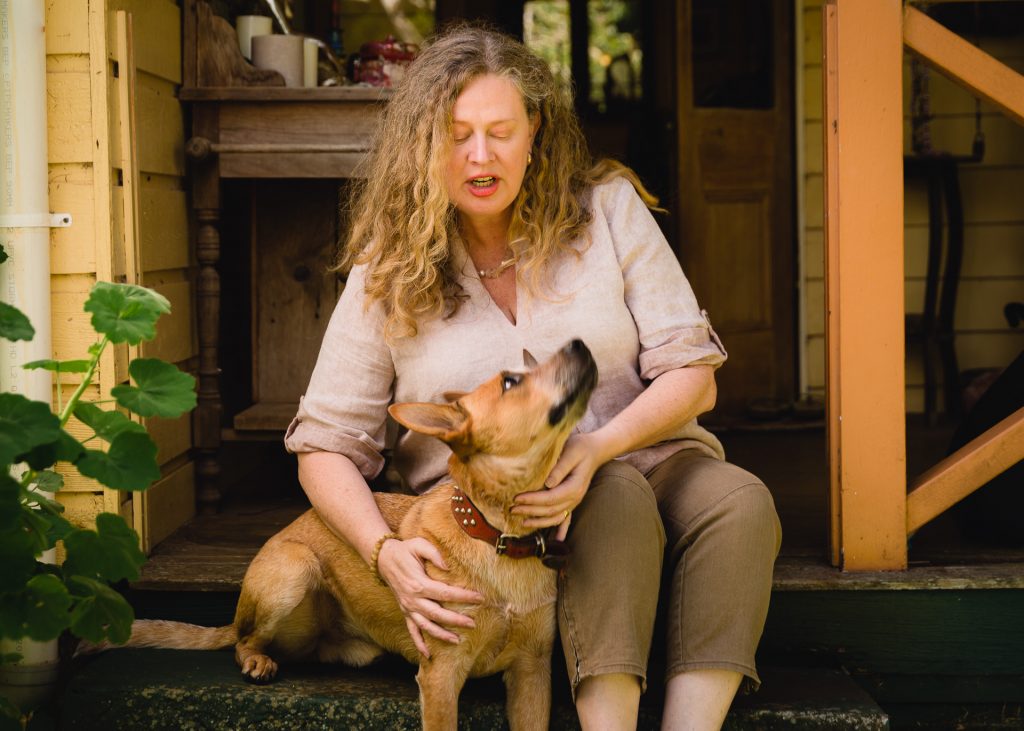 Rufous is a gentle boy. He’s only just turned two, so you think he’d still have a puppy-brain (and if you watched him run around like a demented pixie with his dog brother Harry here at our farm you’d KNOW he is still just a pup) but when he is in the presence of these frail elderly women he suddenly becomes attentive, caring, responsible and wise.