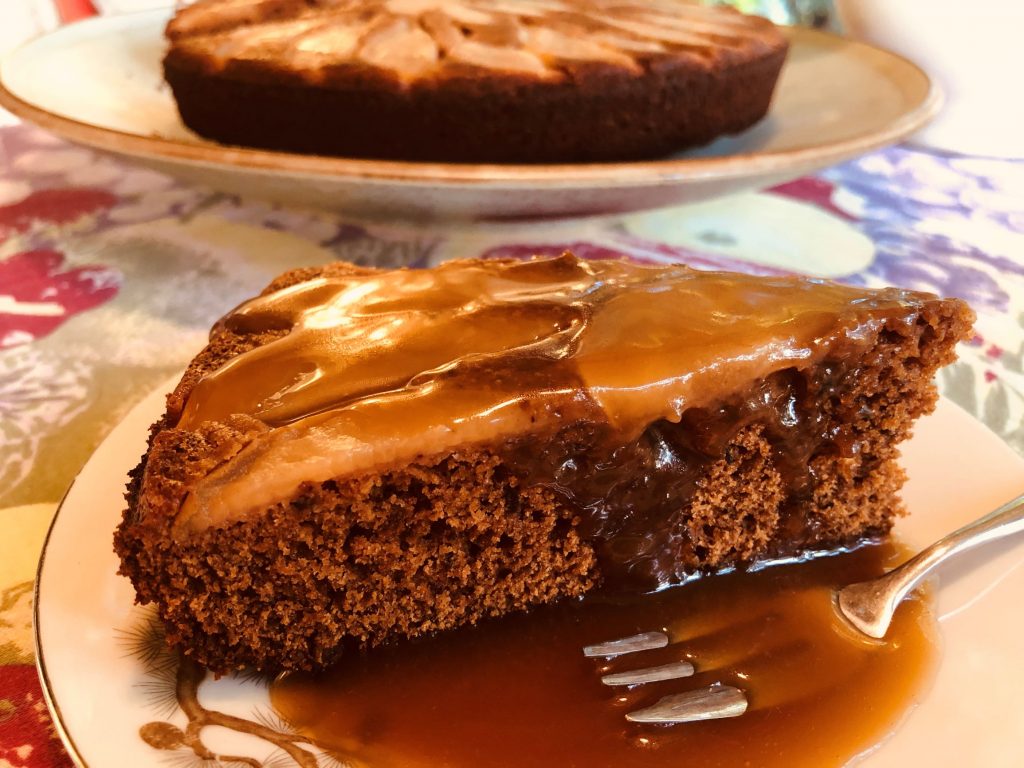 Nola’s Ginger Pear and Date Cake with Caramel Sauce
