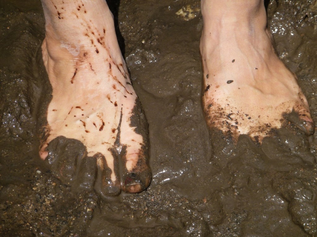 I’d said to my sister that all I needed was a long walk on the beach, so the sand and water could do its abrasive salty thing and make them squeaky clean again. But there hasn’t been time for that yet, and just as my feet start to look cleaner, I go back to the mudpit.