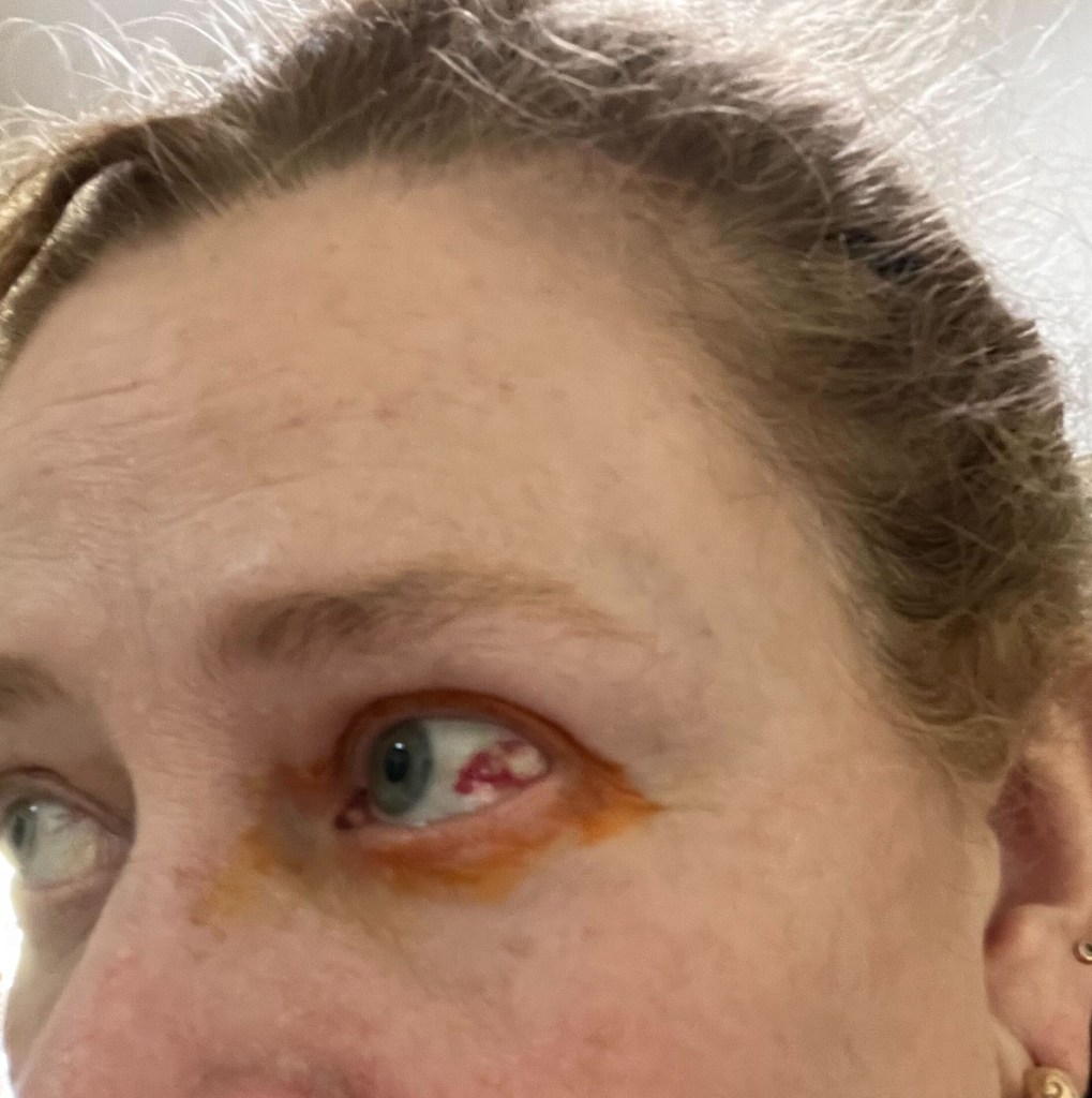 The beetle certainly did some damage. A hematoma on my eyeball, a puncture wound in my eye and an abraded cornea. Ouch!