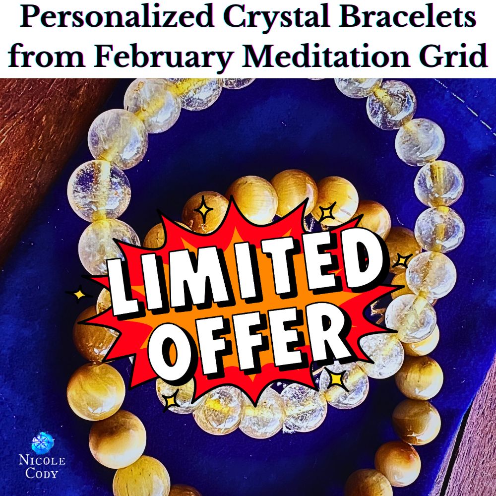 If you’d like, I can program my EMPOWER & EVOLVE BRACELET Duo (Gold Rutilated Quartz and Honey Tiger Eye) especially for you. After I sit in meditation with your bracelets to program them they will be included in my crystal healing grid where I am meditating, and can then be posted to you at the end of the meditation circle. Please add any notes to the comments about what you want to heal, pattern-break or manifest when you order so I can program your crystal with those intentions for you. Here’s the link for ordering that: Programmed Empower and Evolve Bracelet Duo