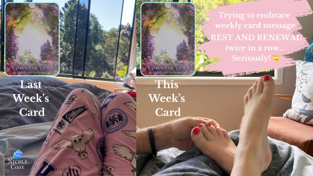 Of course, my weekly card pull seems to keep coming up with that same old chestnut ‘REST’, even if I swap decks. I am doing my best to pay attention and actually do some of that resting this time around.